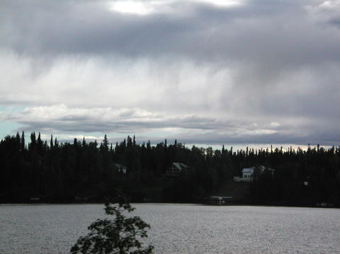 Homes on a lake suburb of Anchorage, float plane in the "driveway"