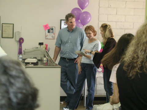 Steve Susan and Tonya look at Little Chefs pictures