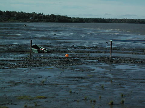The tide drops 20' each day uncovering 400' deep mud