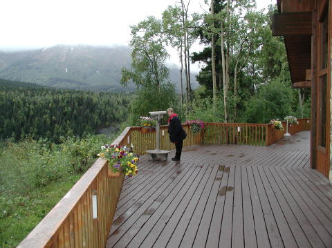 Kathy looking across the valley and the river
