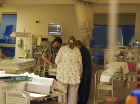 Mom and Grandma in the NICU for a visit, pictures through the window because I can only have two visitors